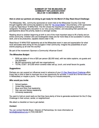 | This is a chance to get your community leaders, active individuals, and VIPs involved in spreading the message of the 21-Day Challenge and the importance of reading aloud starting at birth. |